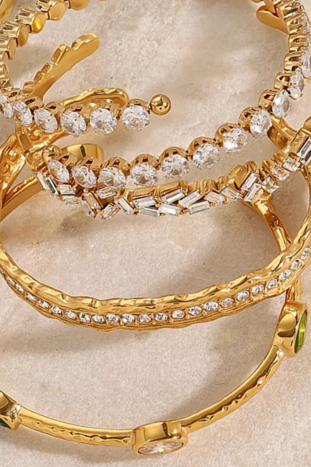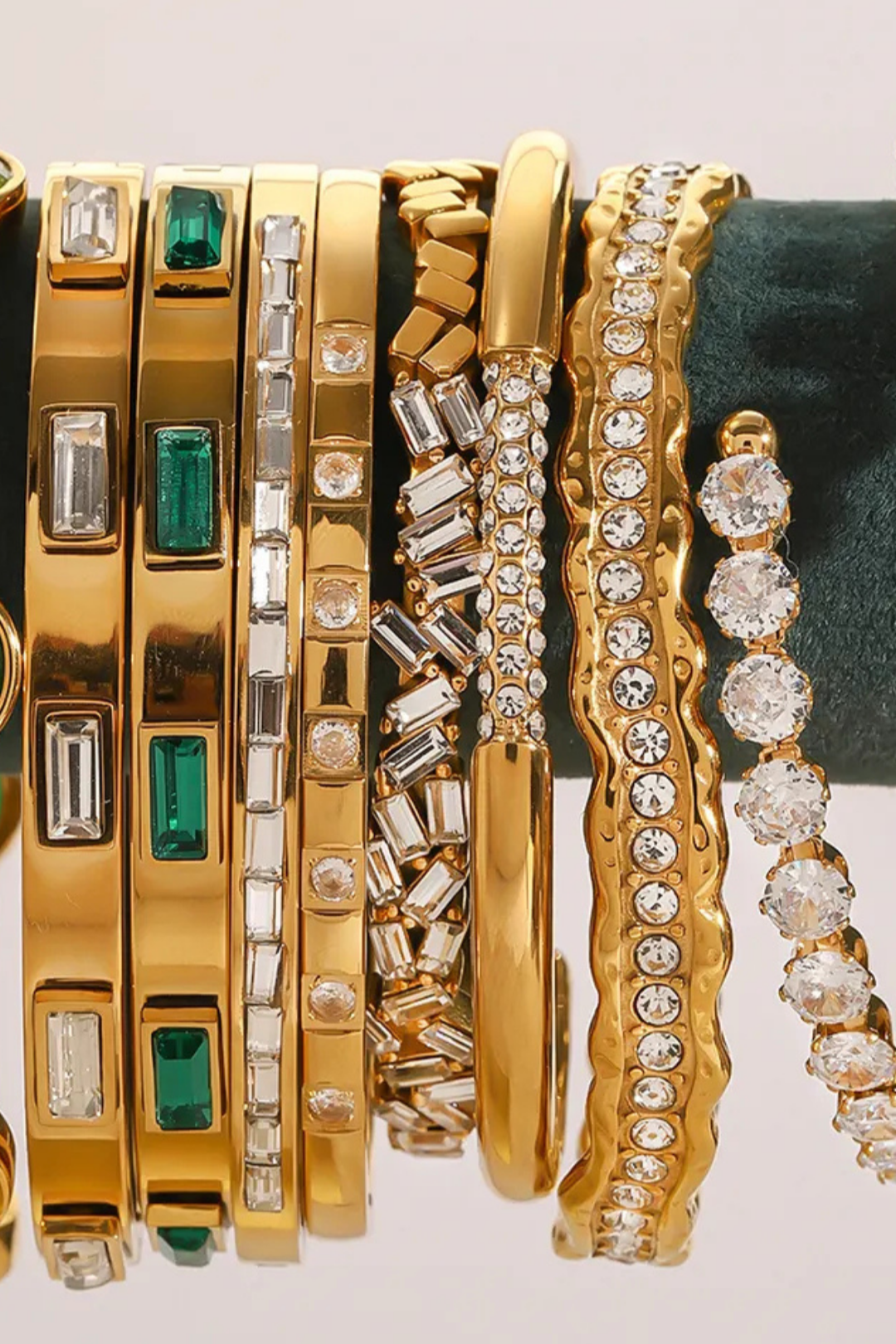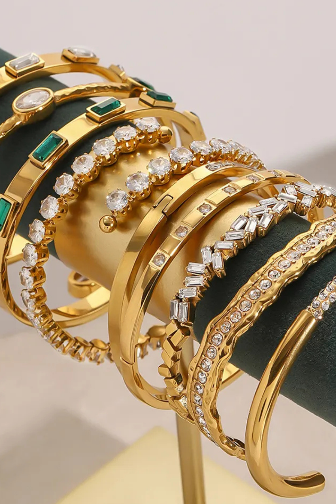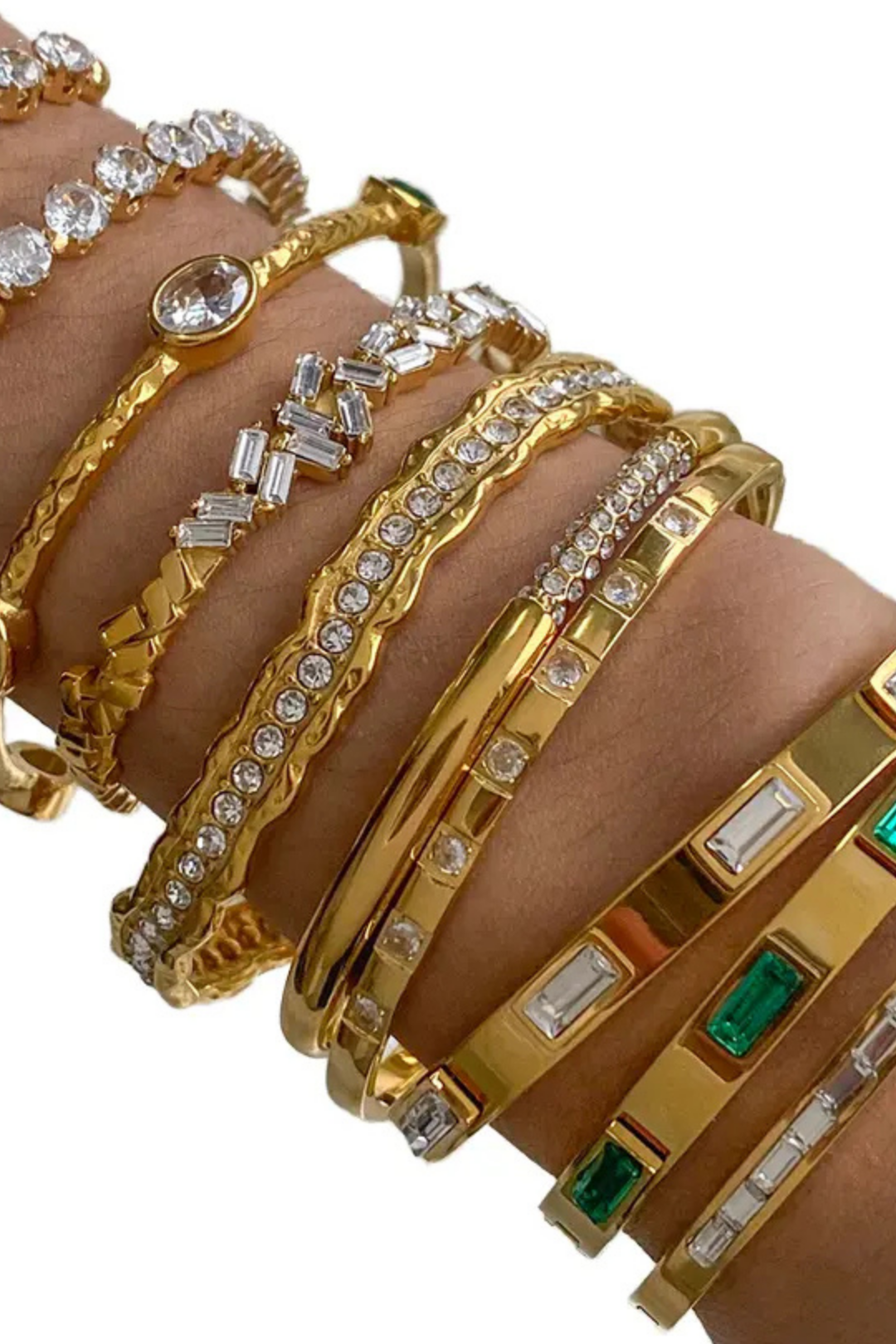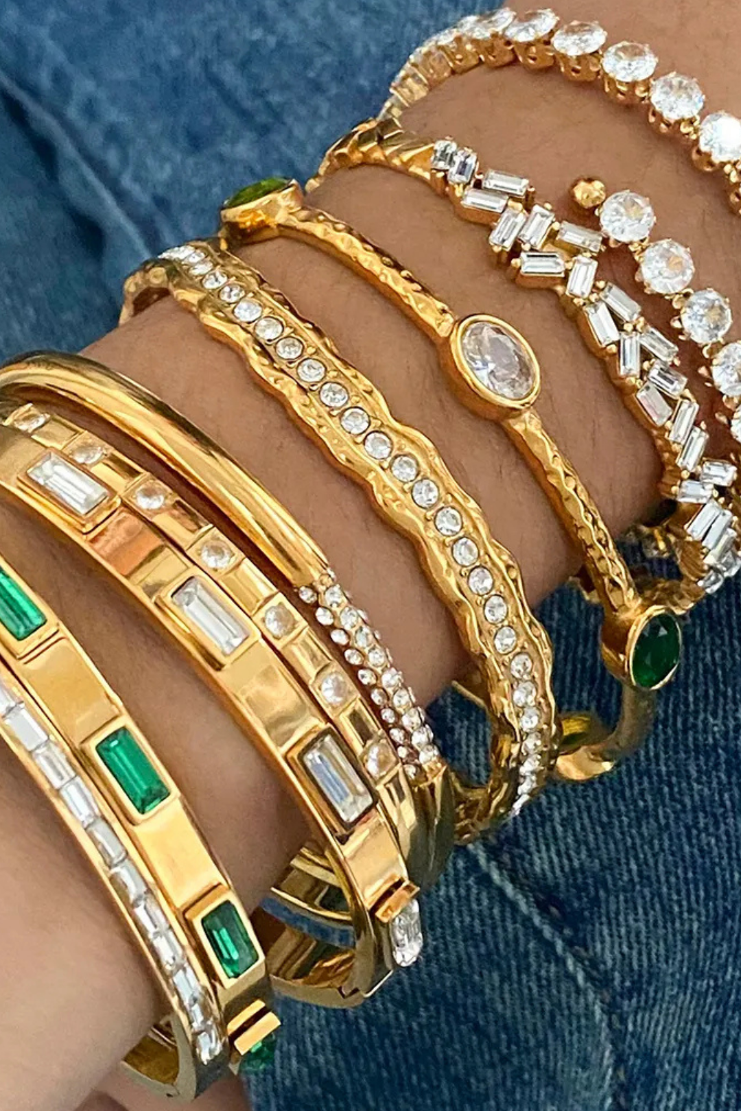 Step into a world of timeless elegance with the Luxe Harmony Collection, a symphony of brilliance and sophistication. Designed for the modern muse, each bracelet in this collection is a masterpiece of craftsmanship, blending radiant diamonds, rich gold 18K Gold Plated, and exquisite emeralds into breathtaking designs. Whether you seek bold statements or delicate layers, these pieces celebrate individuality, luxury, and refined beauty.