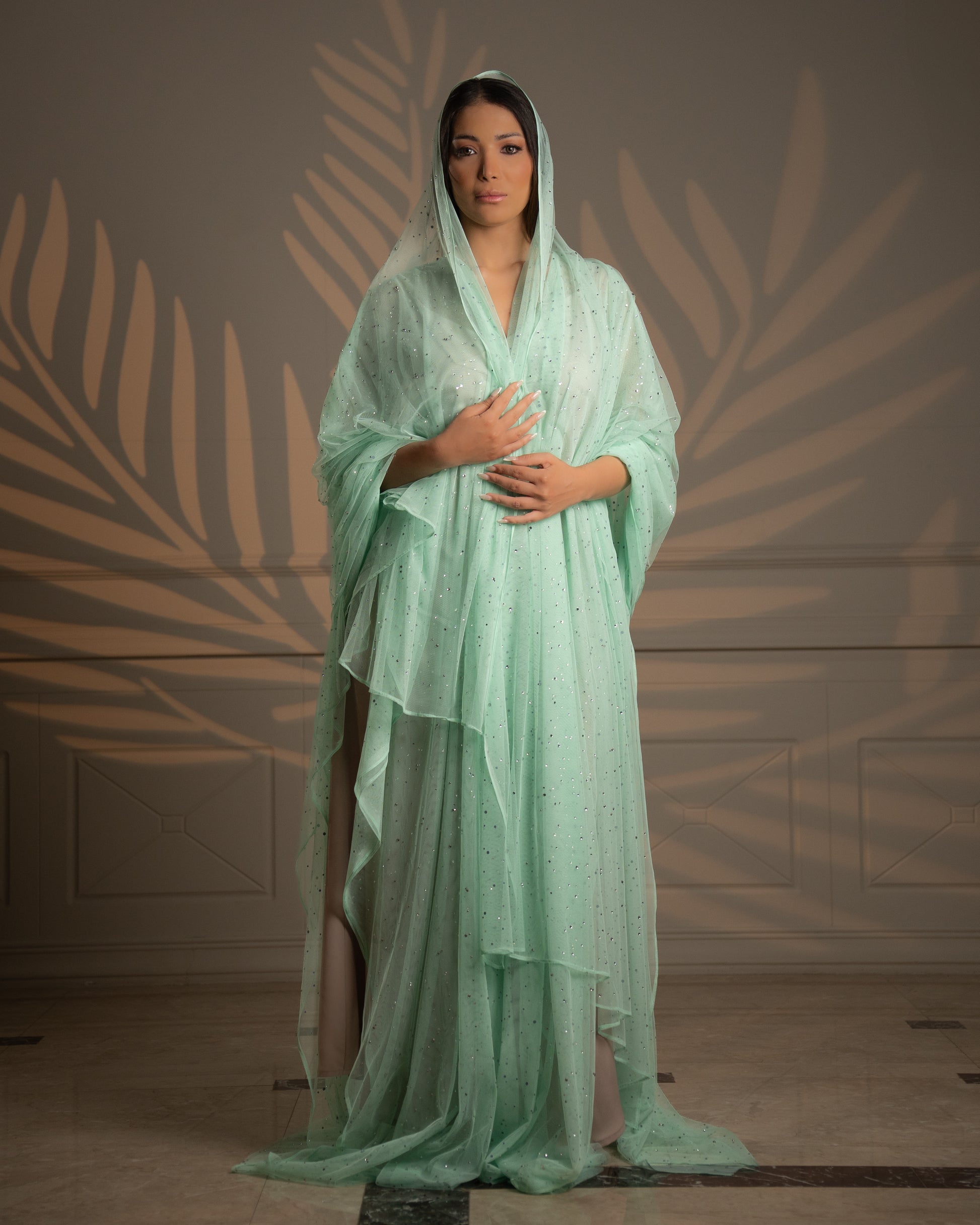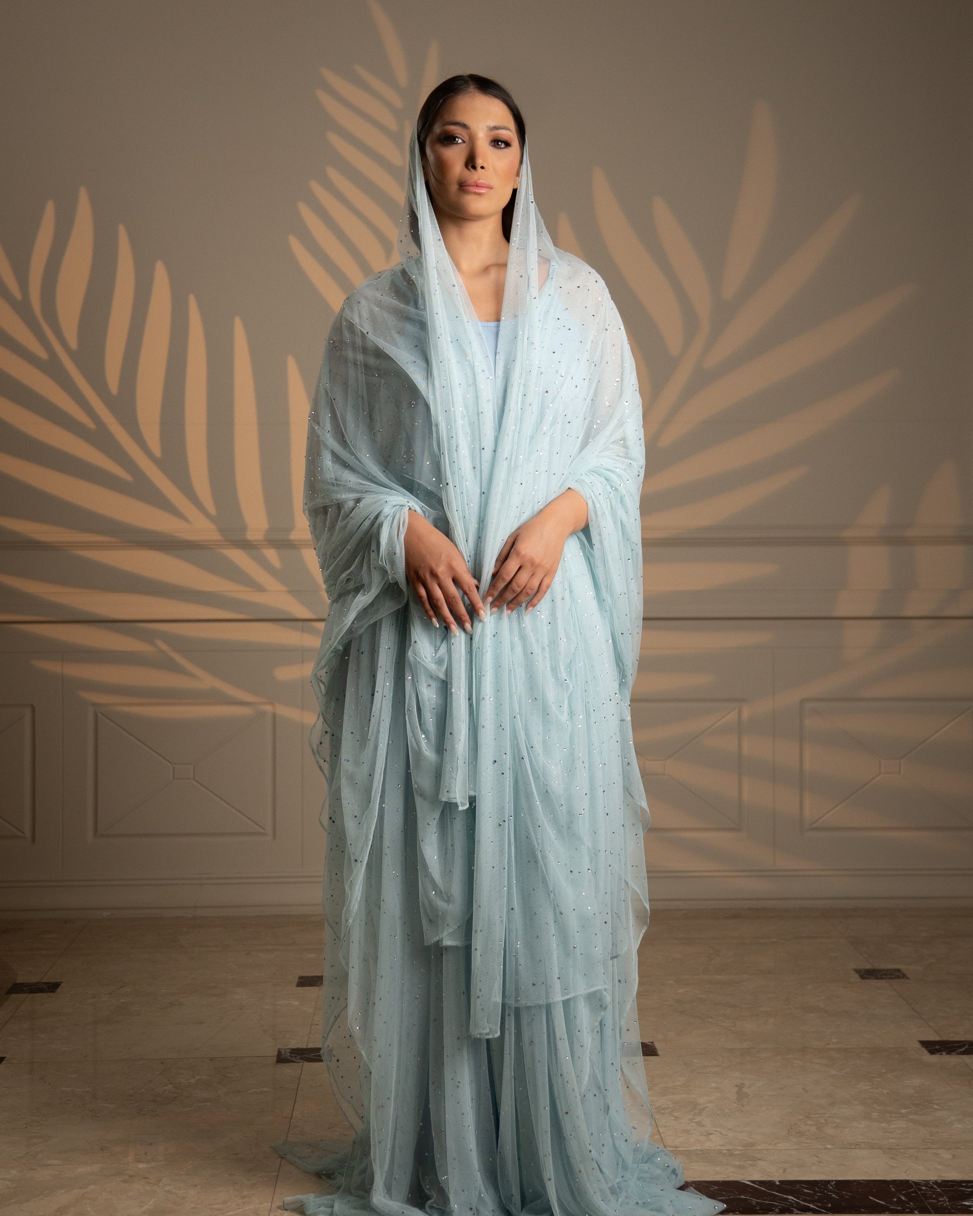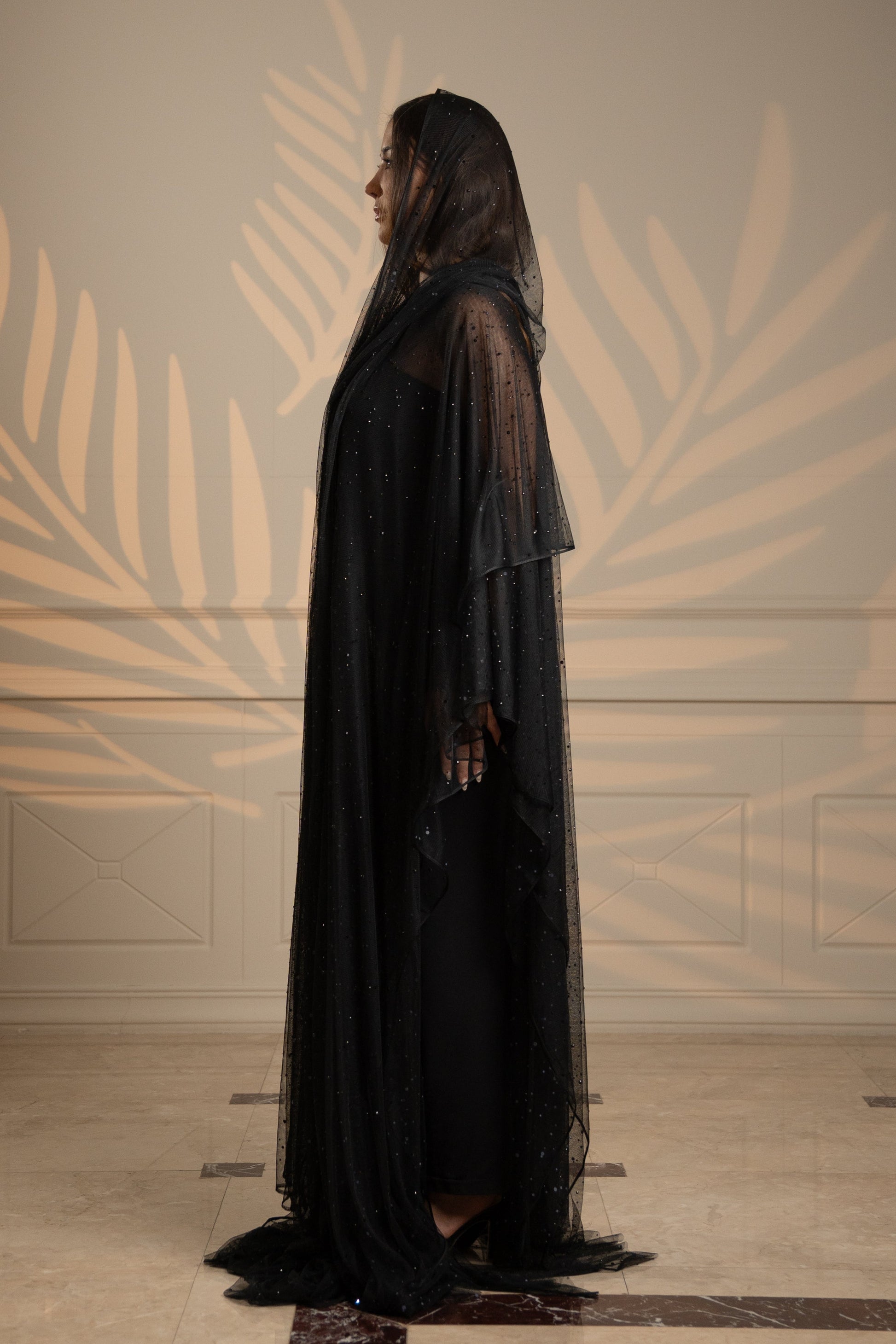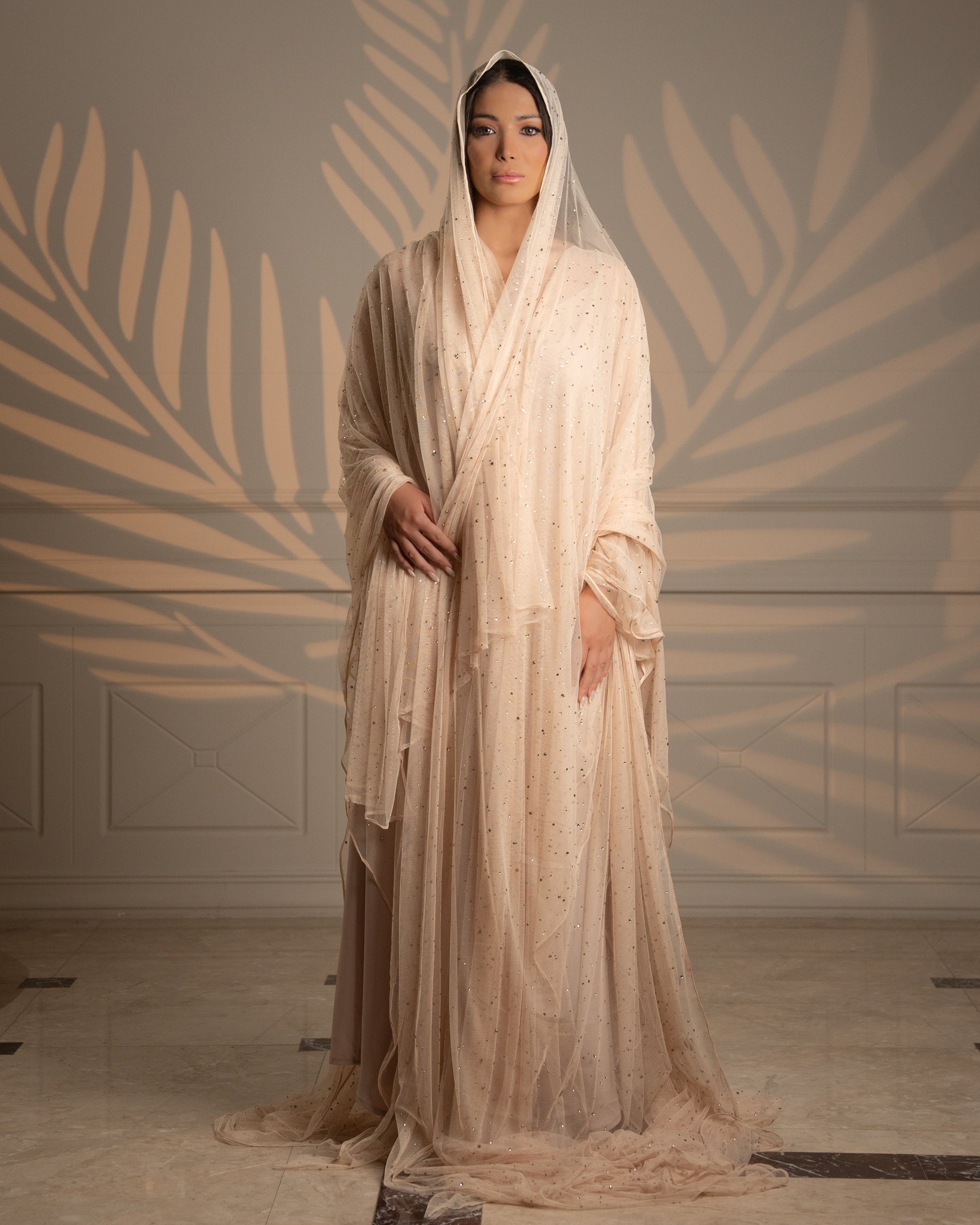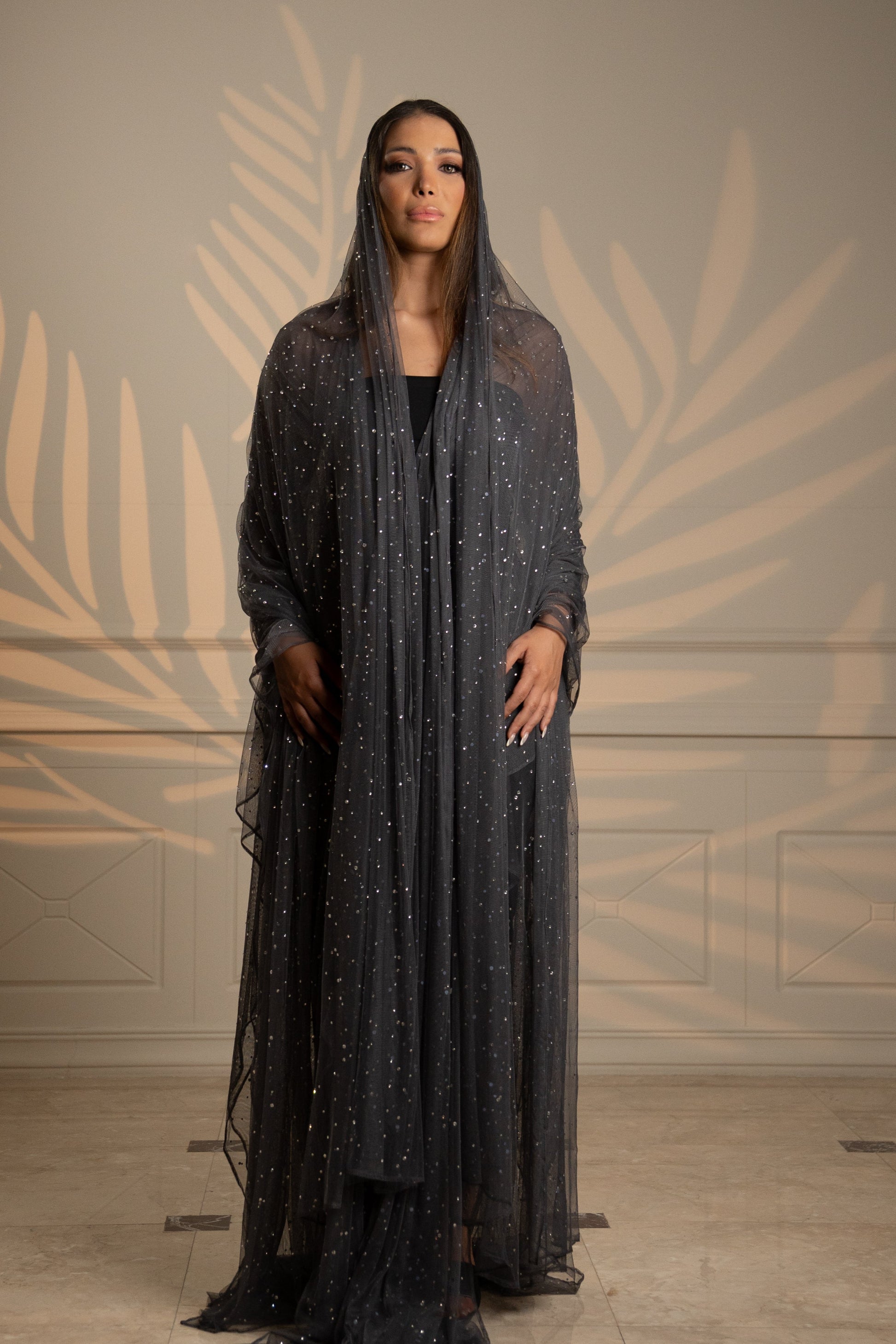 Step into the spotlight with the Starry Whisper II Abaya—a breathtaking masterpiece from the Eternal Grace collection. This flowy, strass-embellished abaya glimmers with hand-sewn crystals, catching the light with every graceful movement. Designed for those who love luxurious glamour, it combines effortless modesty with show-stopping brilliance.